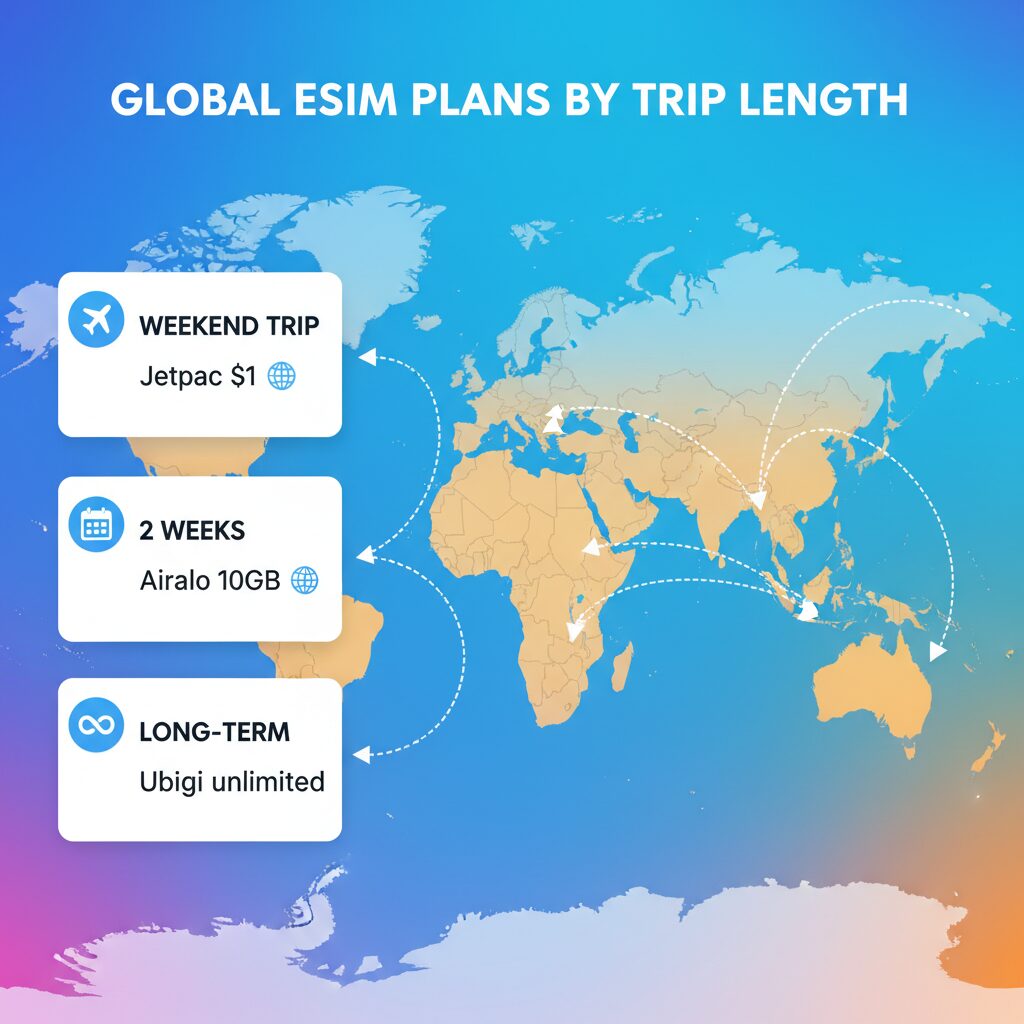 Extended adventures demand **monthly subs or persistent eSIMs**—think 50GB+/month, auto-renew, and data sharing. Latest stats: eSIM adoption for 90-day+ trips up 45% in 2025, driven by remote work[3].